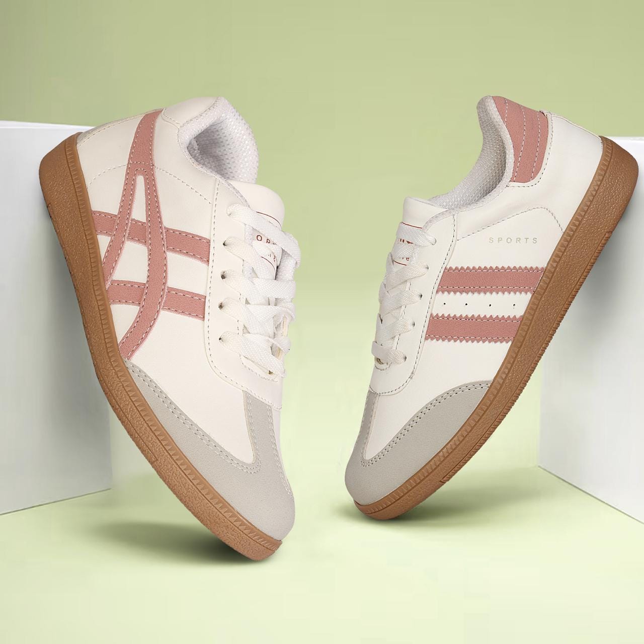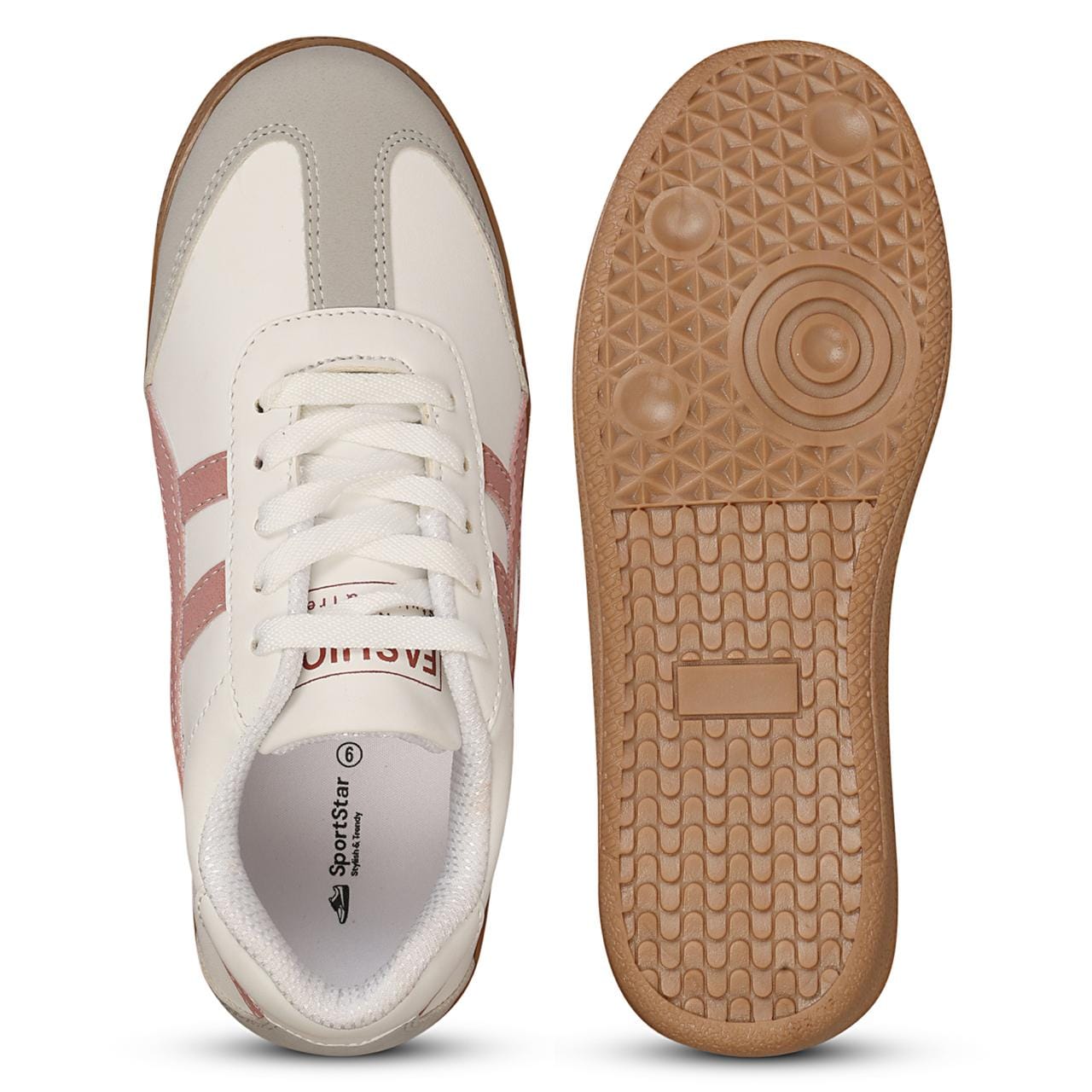 The Red Pigeon RP-StarKick Women Sneakers offer a clean white-pink design that balances modern looks with cushioned everyday comfort. Built for long wear, these sneakers feature breathable mesh lining and a well-gripped sole for reliable traction. Ideal for daily walks, casual outings, or college wear.