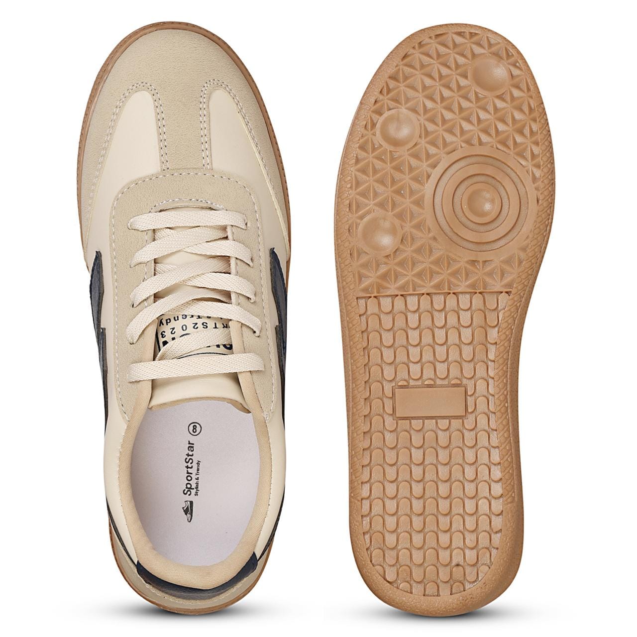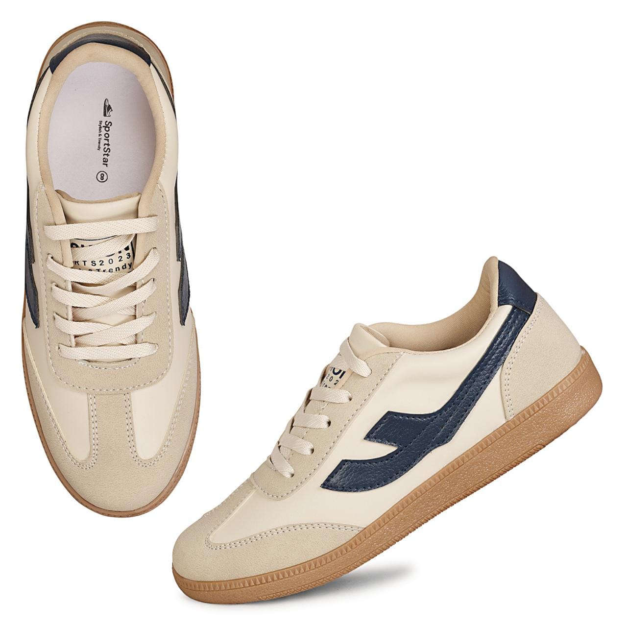 These SportStar Beige Navy Sneakers for women combine fashion and comfort.