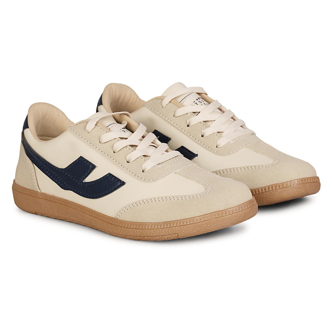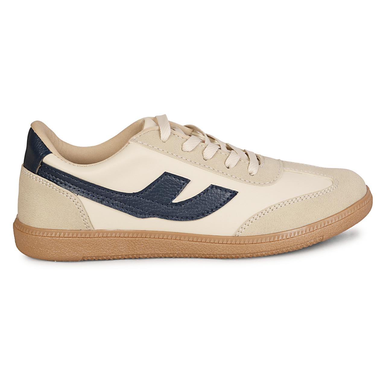 Crafted with premium synthetic leather in beige and navy accents, they offer a stylish retro look with modern performance.
